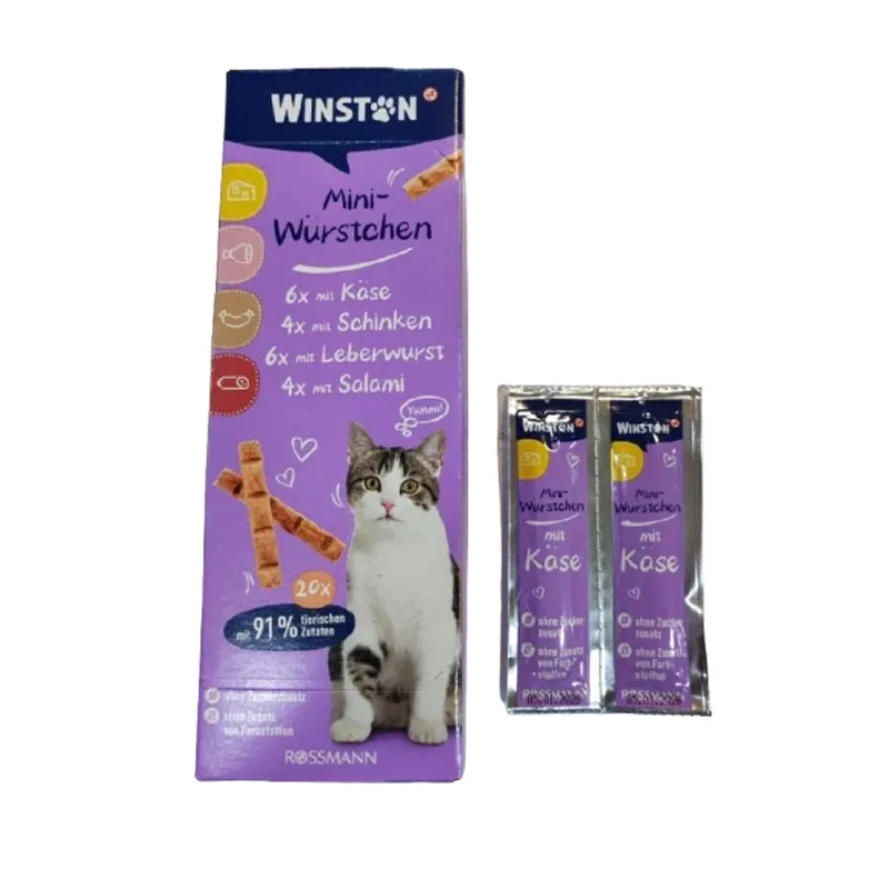 تشویقی مینی سوسیس مدادی وینستون یک میان وعده خوشمزه و مقوی برای گربه هاست که با بافت نرم و طعم های متنوع، تجربه ای لذت بخش برای حیوان خانگی شما ایجاد می کند. این محصول حاوی ۹۱٪ مواد اولیه گوشتی بوده و فاقد شکر و طعم دهنده های مصنوعی است؛ بنابراین گزینه ای سالم و باکیفیت برای استفاده روزانه به عنوان پاداش یا میان وعده به حساب می آید.